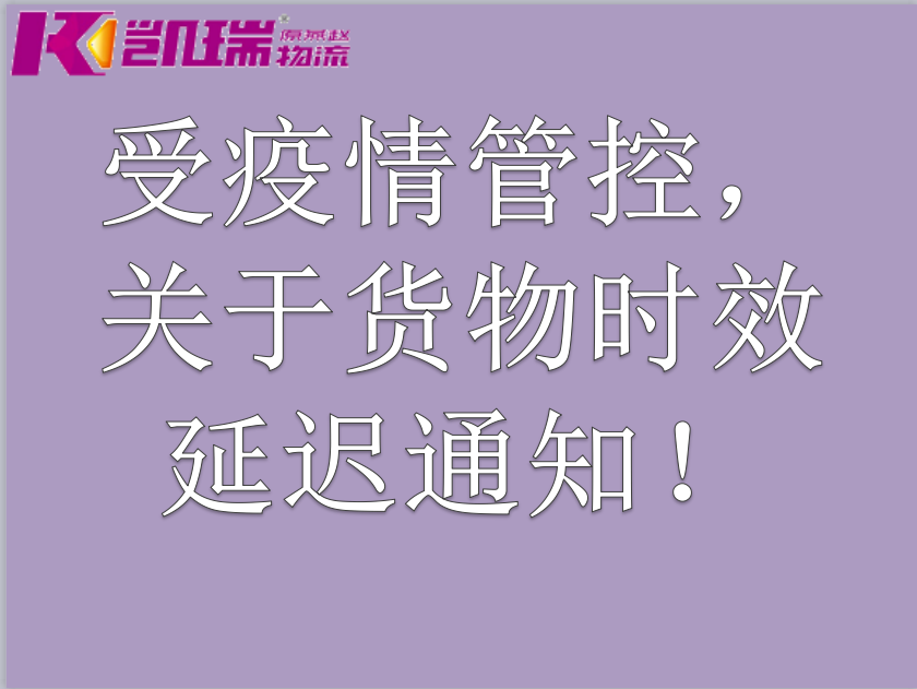 ? ? ?近日,由于鄭州市多個地區(qū)出現(xiàn)疫情,部分地區(qū)實施交通管制,可能會導(dǎo)致我司貨物時效延誤,以及部分網(wǎng)點無法營業(yè)的情況。由此給您帶來的不便,凱瑞物流向各位客戶及合作伙伴深表歉意,懇請大家給予諒解。我們也將持續(xù)關(guān)注疫情防控消息,并全力做好貨物運輸和派送工作,爭取盡快將貨物送到您的手中。